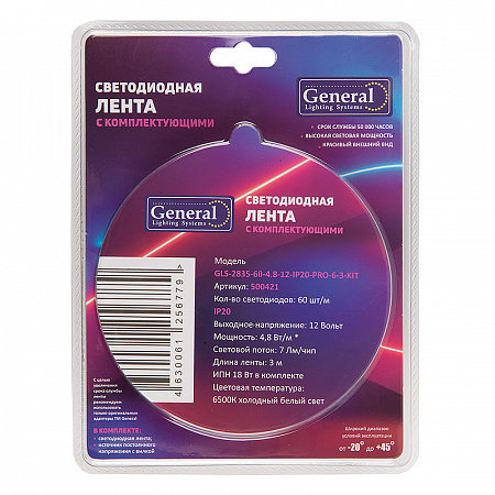 Технические характеристики General lamp 500421 Комплект GLS-2835-60-4.8-12-IP20-PRO-6-3-KIT