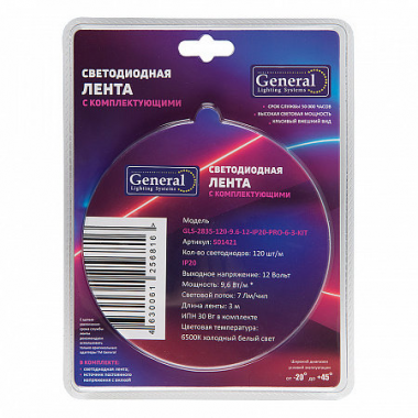 Технические характеристики General lamp 501421 Комплект GLS-2835-120-9.6-12-IP20-PRO-6-3-KIT