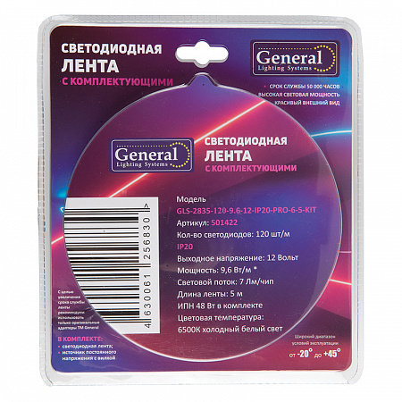 Технические характеристики General lamp 501422 Комплект GLS-2835-120-9.6-12-IP20-PRO-6-5-KIT