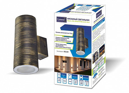 Технические характеристики General lamp 661129 Светильник фасадный GWL-2GX53-M-IP65 BLACK GOLD
