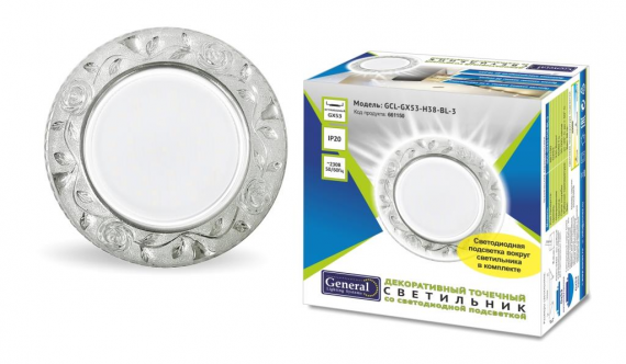 Технические характеристики General lamp 661150 Светильник GCL-GX53-H38-BL-3 СВЕТЛАЯ РОЗА с подсветкой