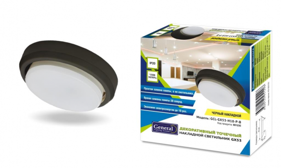 Купить по низким ценам General lamp 661235 Светильник GCL-GX53-H18-P-B накладной пластиковыйОписание General lamp 661235 Светильник GCL-GX53-H18-P-B накладной пластиковый