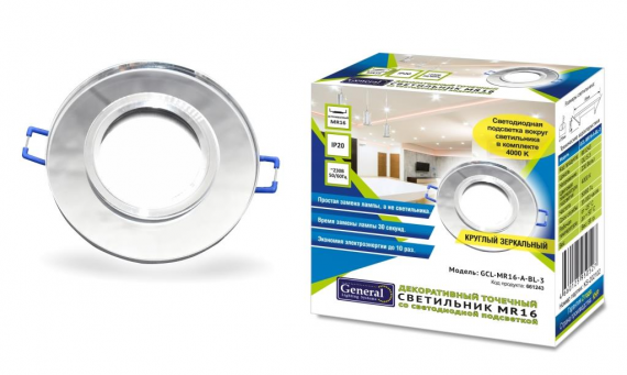 Технические характеристики General lamp 661243 Светильник GCL-MR16-A-BL-3 с подсветкой