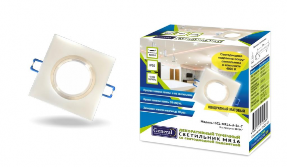 Технические характеристики General lamp 661247 Светильник встр. MR16 GU5.3 91(70)х21