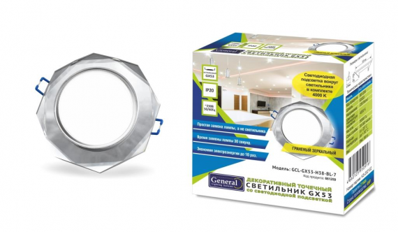 Технические характеристики General lamp 661259 Светильник GCL-GX53-H38-BL-7